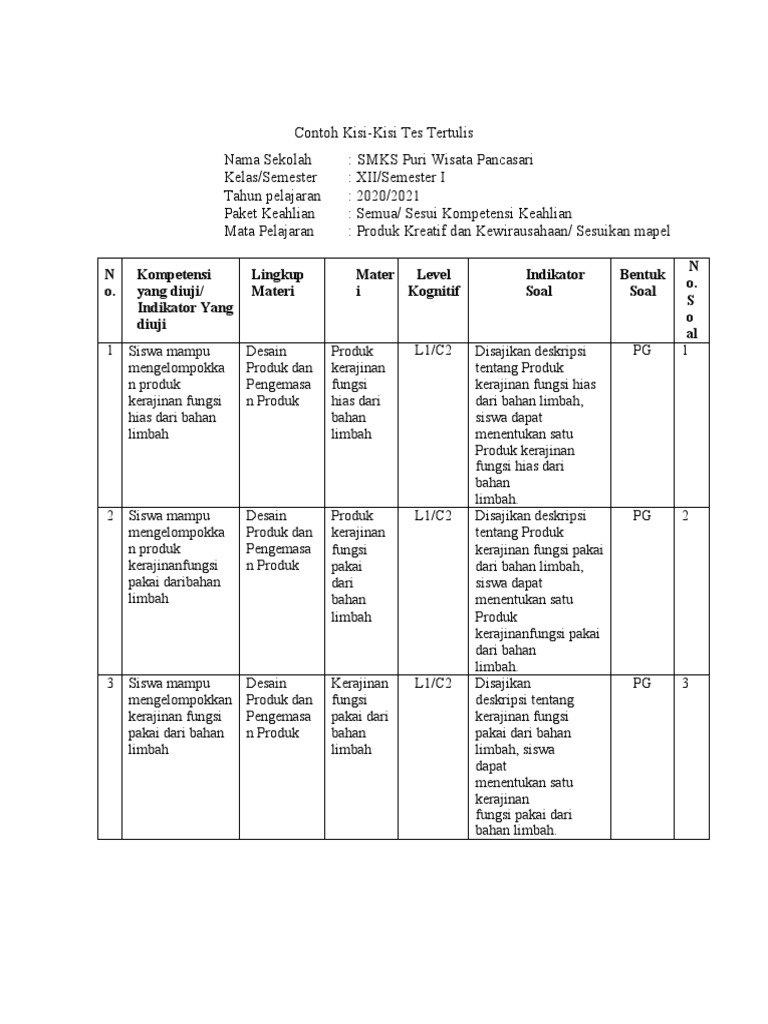 Sebelum memulai, mari kita pahami komponen-komponen utama yang biasanya ada dalam sebuah kisi-kisi soal: