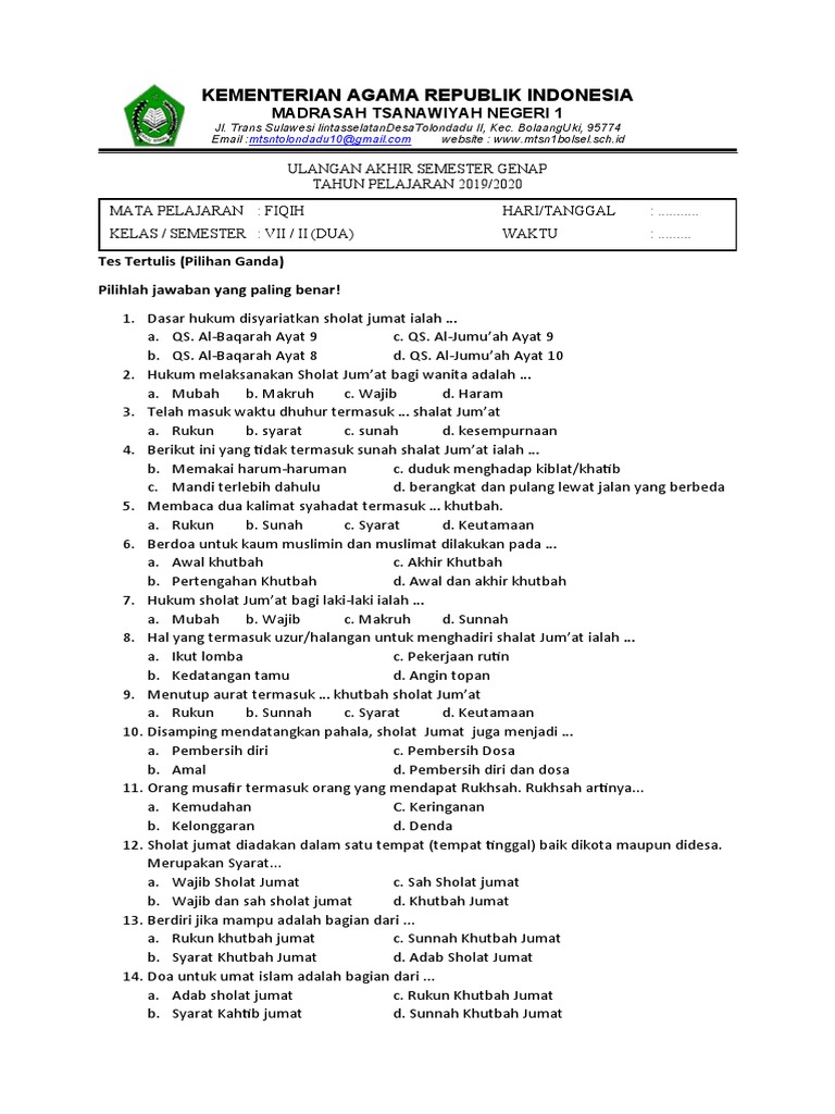 Ujian Fiqih di kelas 3 SD bukan sekadar tolok ukur nilai, melainkan evaluasi seberapa jauh anak-anak memahami dan mampu mengaplikasikan ajaran agama dalam kehidupan sehari-hari. Dengan persiapan yang matang melalui latihan soal, pemahaman konsep, dan bimbingan yang tepat dari orang tua serta guru, diharapkan siswa dapat menghadapi ujian dengan percaya diri dan yang terpenting, memiliki fondasi ibadah yang kokoh. Semoga artikel ini bermanfaat dalam membimbing generasi muda yang beriman dan berakhlak mulia.