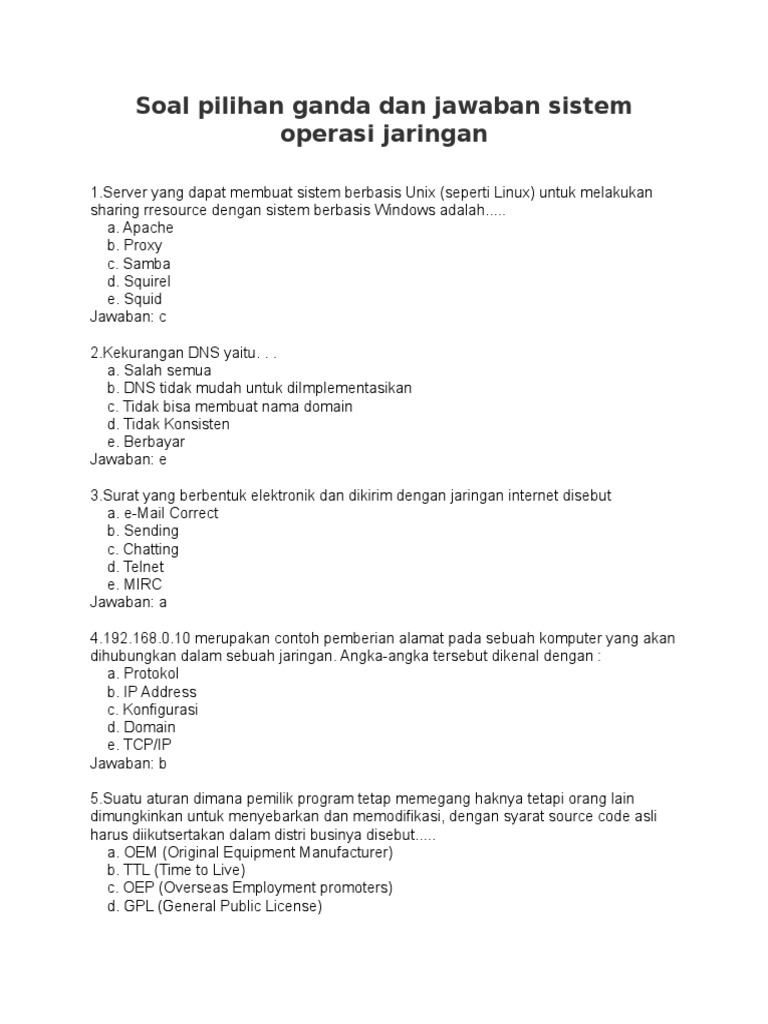 Mendownload soal Sistem Operasi Jaringan kelas XI semester 1 adalah langkah cerdas bagi setiap siswa yang ingin mempersiapkan diri menghadapi ujian dan menguasai materi dengan baik. Dengan memanfaatkan berbagai sumber daya online secara efektif, menganalisis setiap soal, dan mengaitkannya kembali dengan materi pelajaran, Anda tidak hanya akan siap menghadapi ujian, tetapi juga membangun fondasi yang kuat dalam memahami dunia jaringan komputer yang dinamis. Ingatlah, latihan yang konsisten dan pemahaman mendalam adalah kunci kesuksesan Anda di bidang teknologi informasi yang menarik ini. Selamat belajar dan selamat mendownload!